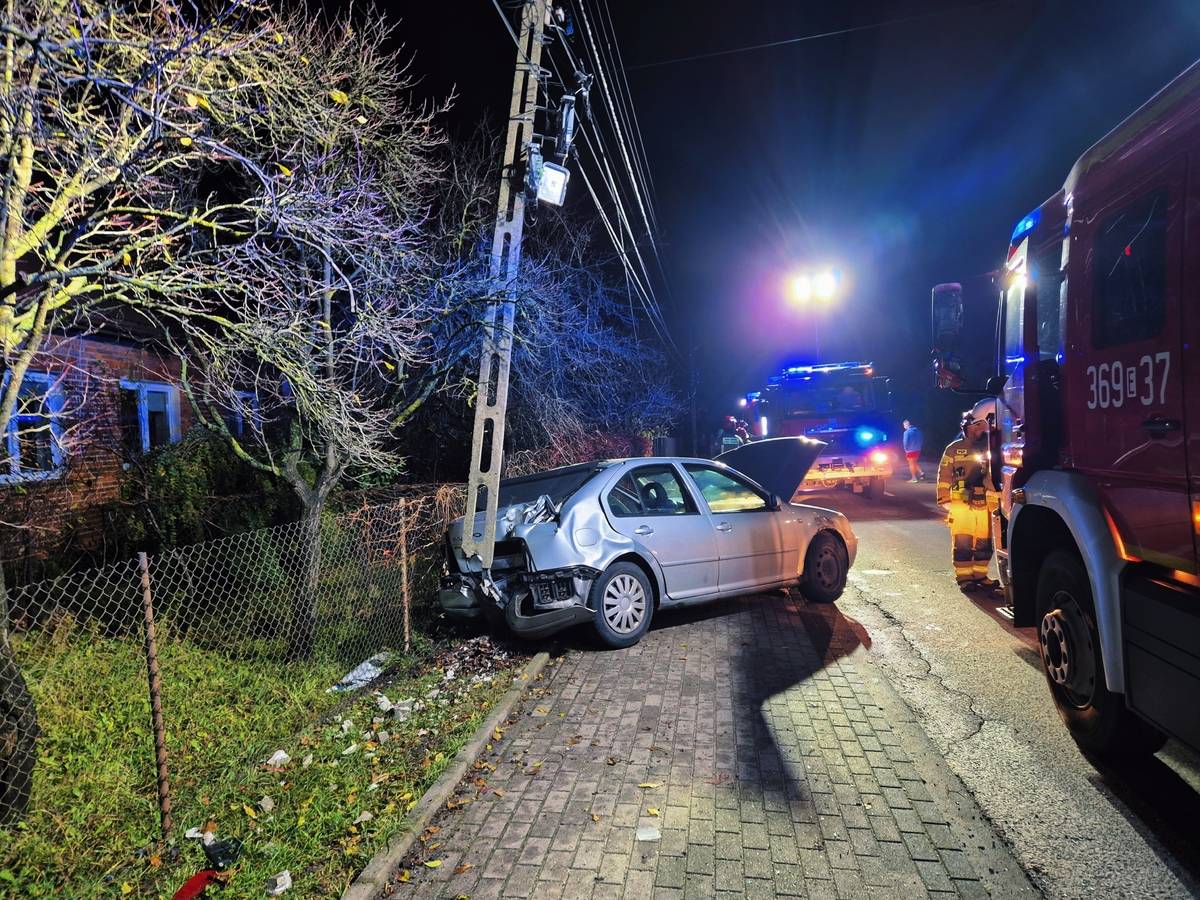 Do zdarzenia doszło w poniedziałek około północy w Makowie. Kierujący samochodem marki Volkswagen nie dostosował prędkości do panujących warunków drogowych, w wyniku czego stracił panowanie nad pojazdem, zjechał na pobocze, uderzył w ogrodzenie posesji, a następnie w słup energetyczny.