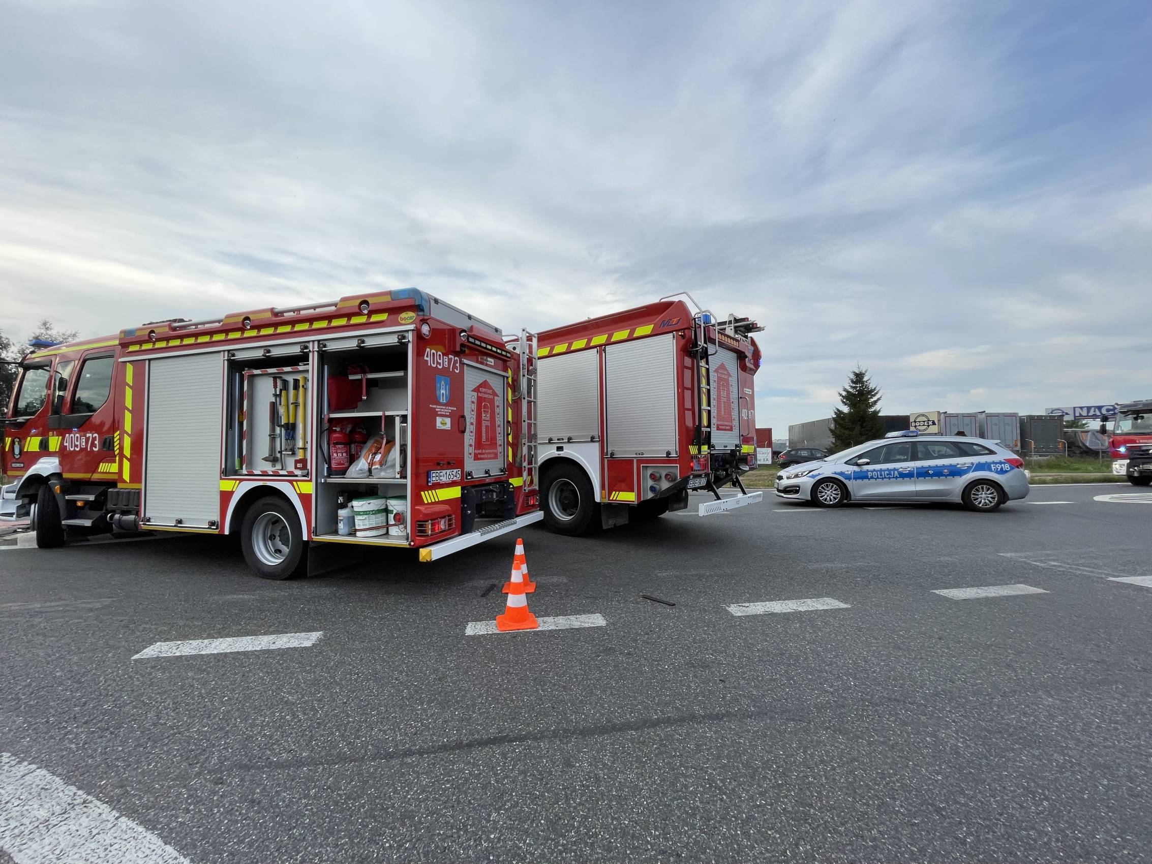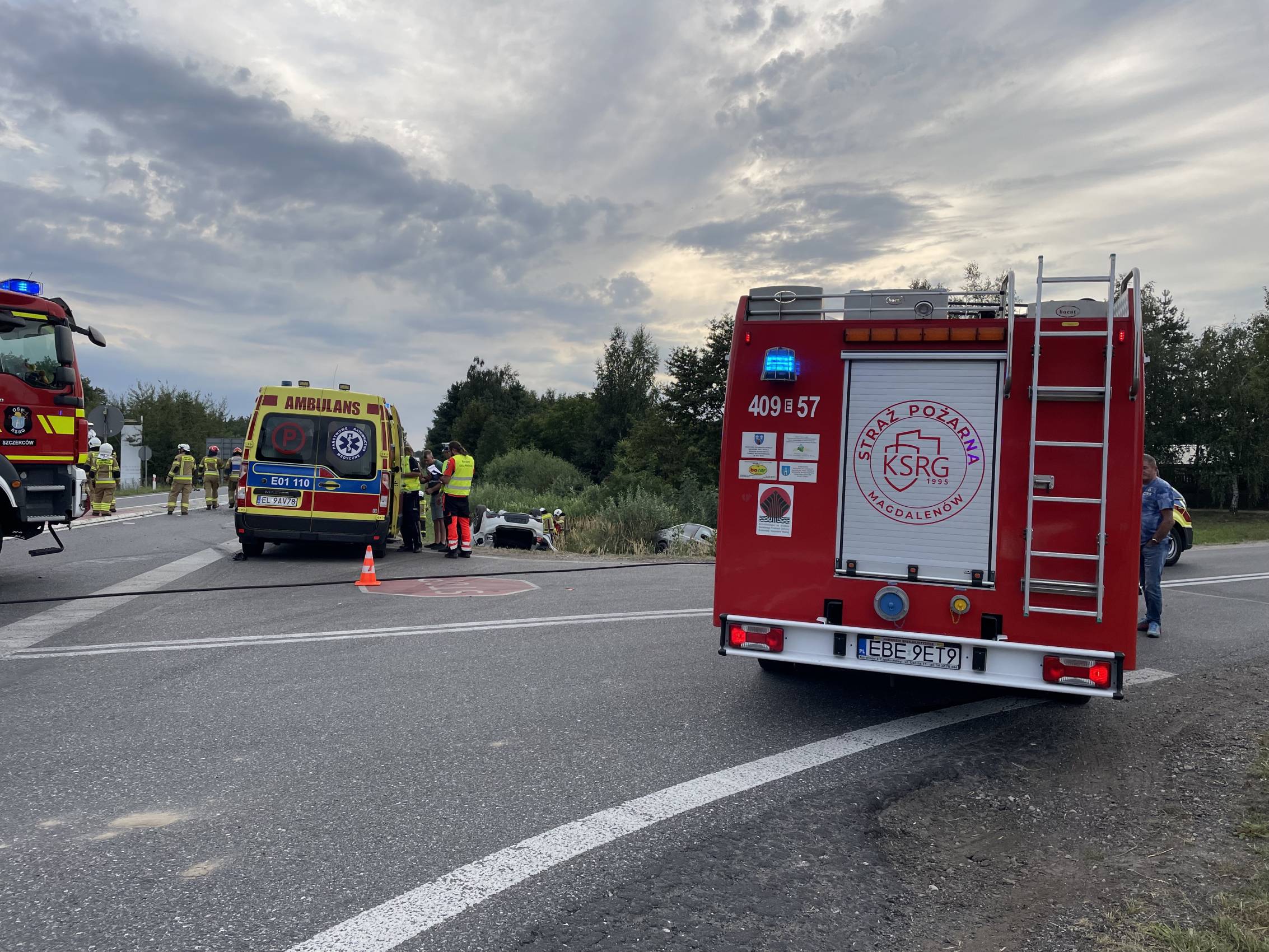 Na miejscu działały dwa zastępy PSP Bełchatów, dwa zastępy OSP Szczerców, oraz po jednym z OSP Magdalenów i OSP Borowa. Do akcji zadysponowano również trzy zespoły ratownictwa medycznego i Lotnicze Pogotowie Ratunkowe. Swoje działania na miejscu zdarzenia prowadziła oczywiście też bełchatowska policja.