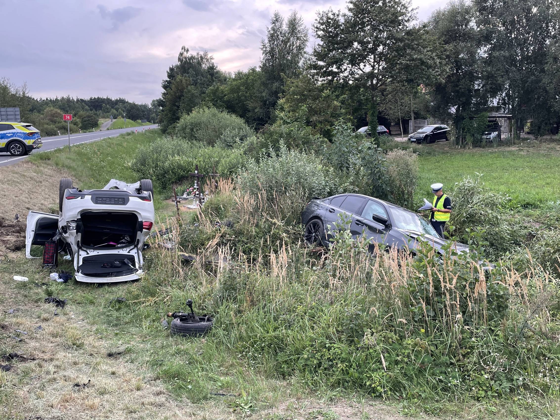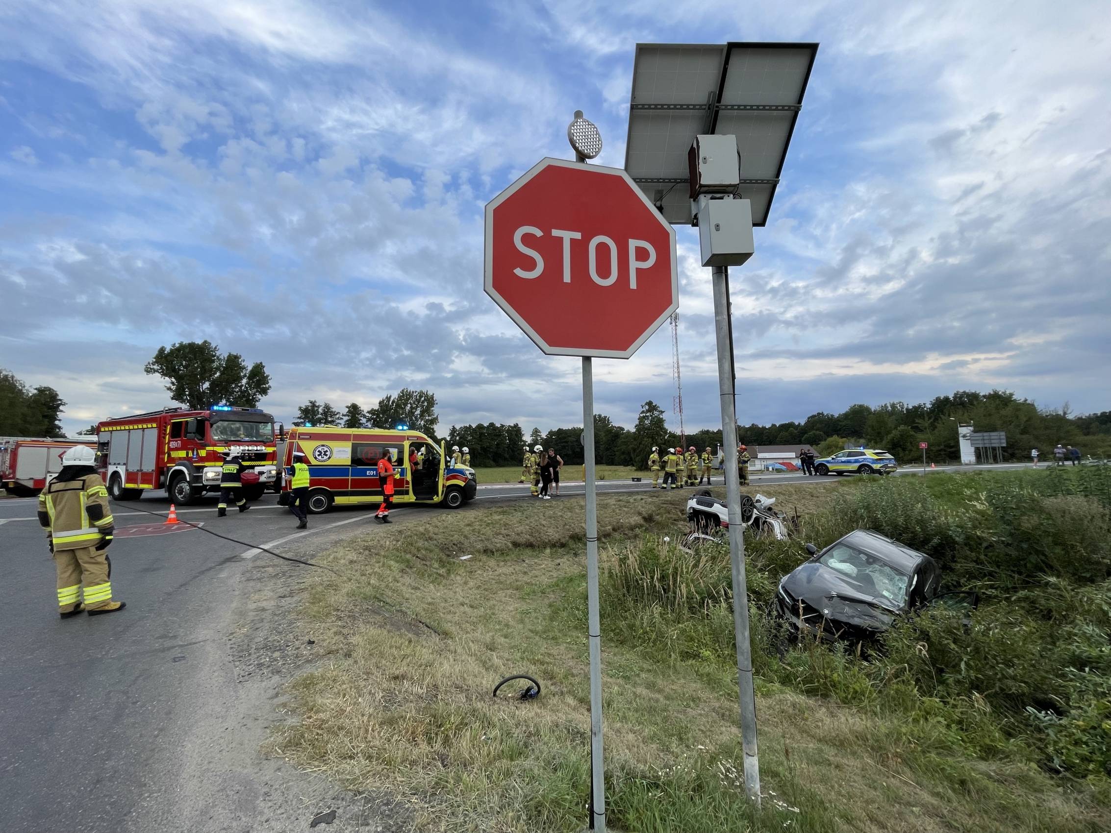 Najciężej poszkodowany został pasażer BMW X2 – 71-letni mężczyzna, który śmigłowcem LPR został przetransportowany do szpitala. Pozostałe osoby – w tym dziecko – trafiły do szpitala karetkami pogotowia.